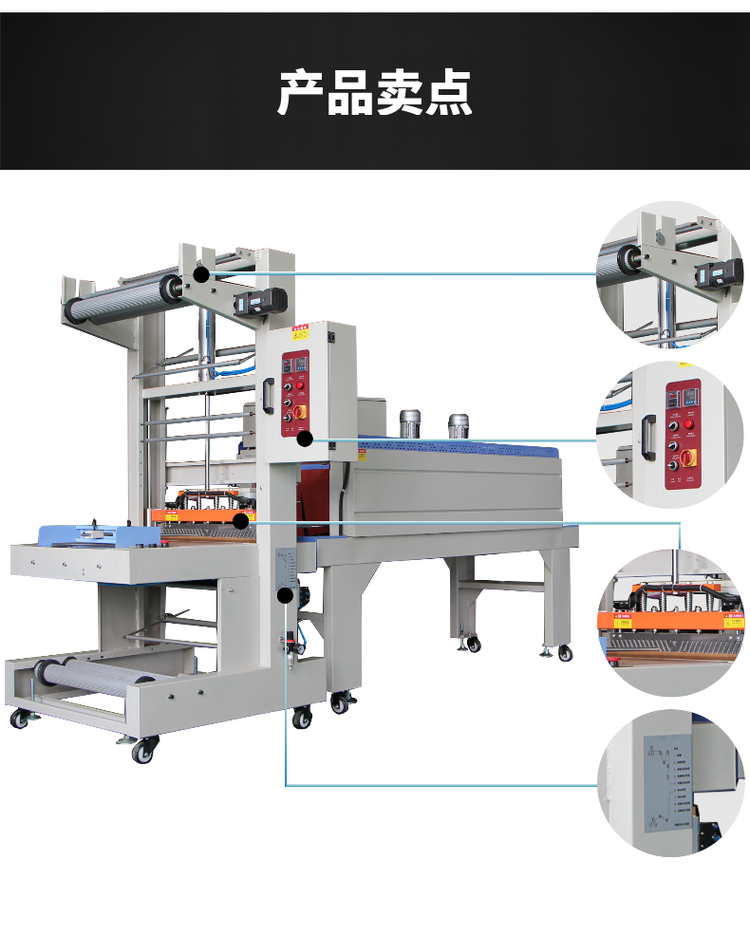 全自動熱收縮包裝機采用自動封口和切斷,封口時將產品手工放到位后只需點動啟動開關即可自動完成封口過程,也可由時間控制器控制定時封口,切斷后產品自動輸送出到收縮爐道里。出爐即完成一個循環操作,等待進入下一個循環過程。全自動熱收縮包裝機系列具有設計先進,性能穩定可靠,節電高效果好,結構新穎美觀,操作維修方便等特點,可適用于任何收縮薄膜的收縮包裝。 電子無級變迅自動高溫,固能繼電器控制,穩定可靠、壽命長、